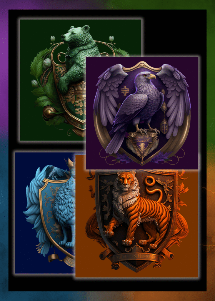 These crest logos present each House in a classic heraldic style, drawing on the look of traditional coats of arms while remaining clear and practical for modern school use. Each design combines the House animal, colour palette, and emblematic details within a formal crest shape, giving the Houses a sense of tradition, identity, and ceremony. They work particularly well for formal contexts such as certificates, awards, documents, and display boards where a more established or official feel is needed. Supplied in high-resolution PNG and print-ready PDF formats, the crest logos offer a timeless alternative to the polygon designs while sitting comfortably within the same visual system.